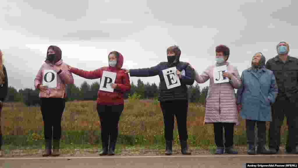 На автодороге у села Тарлаши, вдоль которого проектировщики планируют протянуть магистраль, собралось около семисот человек. Люди стояли вдоль трассы, держа в руках буквы, которые складывались в названия их населенных пунктов. Затем участники схода выстроилось в гигантские буквы так, чтобы сверху можно было прочитать слово "Стоп". Организаторы снимали акцию с квадрокоптера.